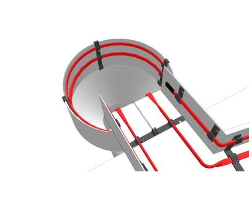Крепежный зажим КМ/3Т применяется для крепление нагревательного кабеля в водоприемной воронке, на выходе кабеля из водосточной трубы. Зажим подходит для крепления большинства саморегулируемых и резистивных кабелей. Зажим имеет три проушины, а так же крюк, который позволяет фиксировать зажим на водоприемной воронке. Проушины зажима КМ/3Т позволяют закрепить спиралью и равномерно распределить в воронке нагревательный кабель.