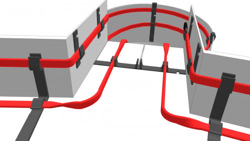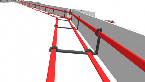 Основным назначением зажима КМ/3В является крепление и равномерное распределение нагревательного кабеля в водосборном лотке. Расстояние между зажимами не должно превышать 500 мм. Зажим КМ/3В устанавливается на всей протяженности водосборного лотка. Зажим подходит для крепления большинства саморегулируемых и резистивных кабелей. Материал изделия позволяет осуществлять монтажные работы при температуре не ниже минус 35 С, а также оснащен специальными добавками, обеспечивающими стойкость к ультрафиолету. Монтаж нагревательного кабеля делится на два этапа: